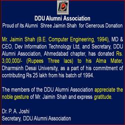 The members of the DDU Alumni Association appreciate the noble gestures of Alumni.